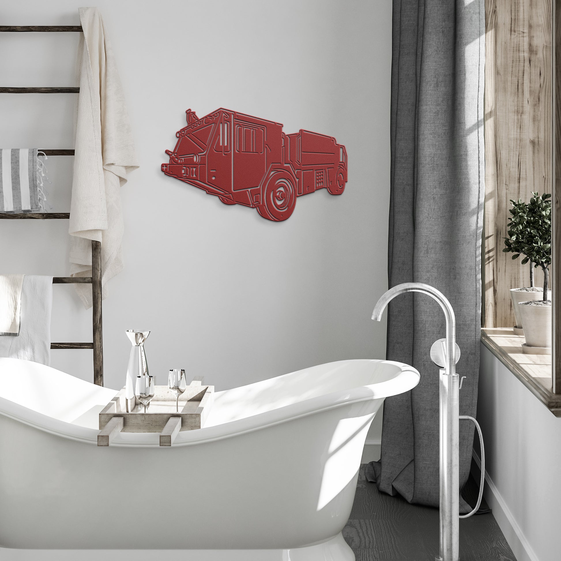 Elevate your home decor with a beautiful Metal Art of the AS 32P-19A - Fire Truck to enhance your military experience with art on your walls. Made with 18-gauge steel and powder coated in your choice of 5 colors, this sign is built to withstand the elements for years of enjoyment. Add a touch of elegance to your home on the inside, outside, or both!